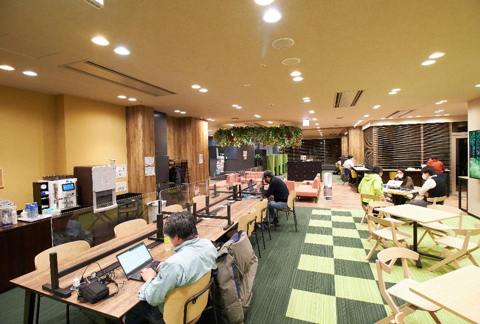 コワーキングスペースは、気分や目的によってエリアをお選びいただけます。コワーキングスペース内には6タイプの席をご用意しておりますので長時間のお仕事でも気分を変えてお使いいただけます。また、一人で集中して作業に取り組みたい方のために「集中ゾーン」もご用意しております。「集中ゾーン」では私語禁止となっており、静かな環境で勉強や仕事に向かえます。その他、仕事の合間の息抜きにぴったりなソファ席や雑誌、フリードリンクも各種取り揃えております。リクエストなどございましたらスタッフまで気軽にお声掛けください。