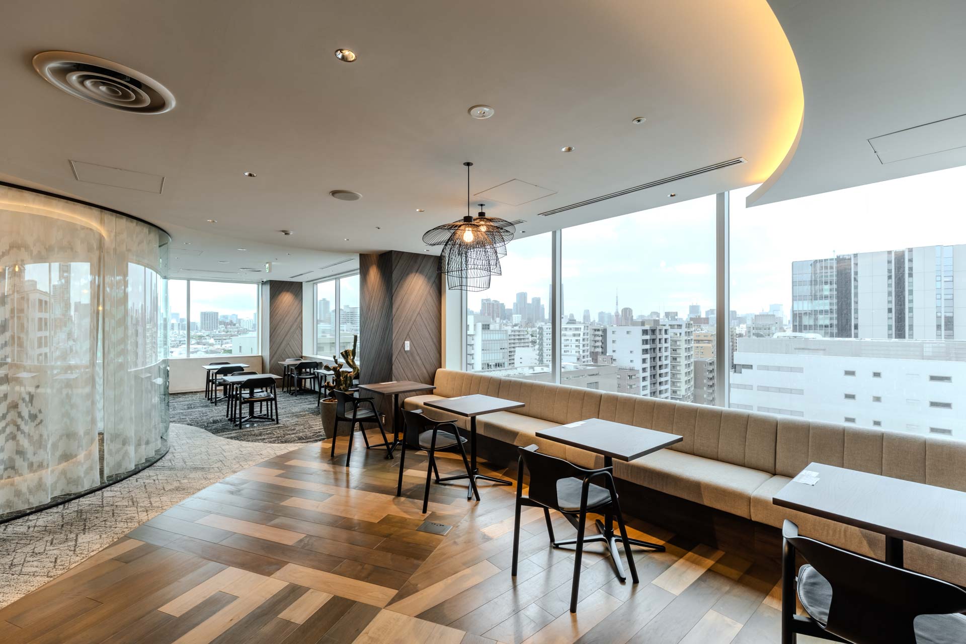 柔らかな曲線で表現した「ビジネスエアポート恵比寿」。