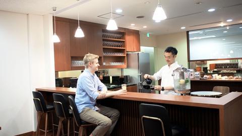 複数のオフィス棟からなる品川インターシティにはバラエティに富んだレストラン、各種クリニック、銀行、郵便局、イベントホールなどが完備され、また周辺にはホテルや商業施設が多数あり、お客さまに快適なビジネス環境を提供しています。品川インターシティA棟は、都内有数のモダンな超高層オフィスビルとして知られ、美しい曲線を描くガラス張りの外観は、品川港南のランドマークとなっています。28階にあるサーブコープのフロアは、日本の伝統美をテーマにデザインされ、長い歴史のある品川の風情を表現しています。フロアからは東京のシティビューやレインボーブリッジを望む壮大な景色をお楽しみいただけます。