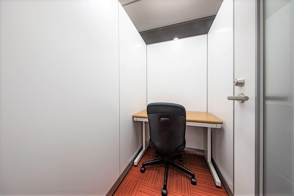 周囲の視線を遮る高さ180cmのパーテーションで区切られた、自分だけのプライベート空間を確保できる1人用ブースです。施錠可能な扉付きの個室タイプで、法人登記も可能なため、コストを抑えながら業務に集中したい方に最適です。 また、オフィスフロア入口はオートロックを採用しており、部外者の侵入を防ぐ万全のセキュリティ体制を整えています。 料金体系は極めて明瞭で、初期費用は入室契約金55,000円と初月賃料のみでスタートいただけます。水道光熱費込みの定額制で、更新料や原状回復費も一切不要。不透明な追加費用の心配がないため、独立直後の方でも安心して事業に専念いただけます。