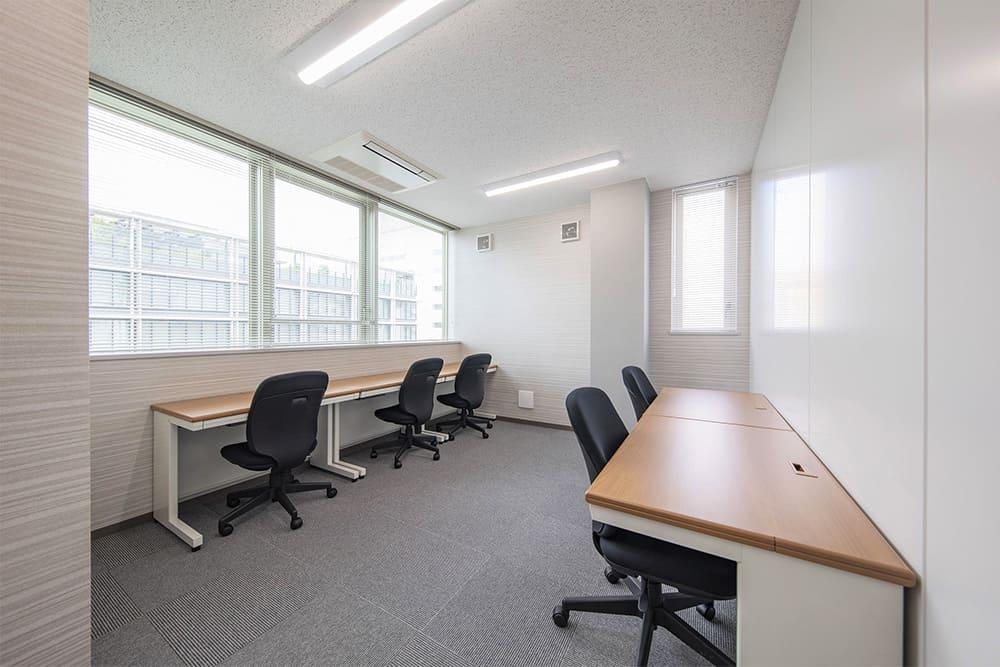 オフィス内にわずか3部屋のみ用意された、約7㎡の広さを有する3人用の完全個室です。天井まで壁で仕切られた独立空間には、外光が差し込む窓と、好みの温度に設定できる個別空調を完備。周囲の視線を一切気にすることなく、チームでの集中作業や自社専用の拠点として最適です。 セキュリティ面では、各室の専用鍵とフロア入口のオートロックを組み合わせ、第三者の立ち入りを制限した安全なワークプレイスを構築。機密性の高い情報や大切な機材もしっかりと守ります。 初期費用は入室契約金110,000円と初月賃料のみで、敷金・更新料・原状回復費といった追加コストは一切不要です。